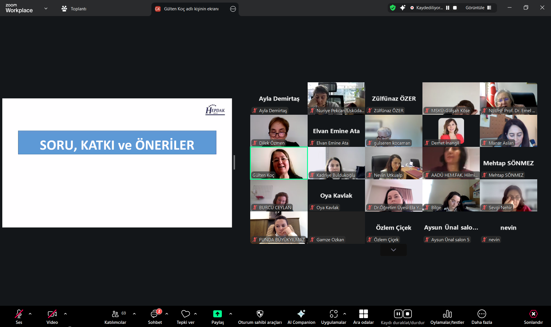 HEMED ve HEPDAK tarafından daha önce düzenlenen "Doçentlik Değerlendirme Sürecinde Yaşanan Sorunlar" çevrimiçi webinarı sonrası öğretim üyelerinden jürilerin (mevcut durumda yapan ya da yapacak olan) katılacağı bir toplantı düzenlenmesi konusunda gelen talepler üzerine 1 Nisan 2024 tarihinde yalnızca jürilere yönelik bir toplantı düzenlenmiştir. Moderatörlüğünü Akdeniz Üniversitesi Hemşirelik Fakültesinden Prof. Dr. Kadriye BULDUKOĞLU ve Sağlık Bilimleri Fakültesi, Hemşirelik Bölümünden Prof. Dr. Ükke KARABACAK’ın yaptığı çevrimiçi toplantıya çeşitli üniversitelerin hemşirelik programlarından 142 öğretim üyesi katılmıştır.