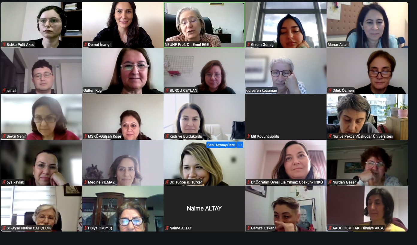 HEPDAK ve HEMED İşbirliğiyle düzenlenen webinarlardan IX.sunda “Doçentlik Değerlendirme Sürecinde Yaşanan Sorunlar” ele alındı. İnönü Üniversitesi Hemşirelik Fakültesi öğretim üyesi Prof. Dr. Rukuye AYLAZ’ın moderatörlüğünde gerçekleştirilen webinarın konuşmacıları Atatürk Üniversitesinden Prof.Dr. Ayda ÇELEBİOĞLU, İstanbul Üniversitesi- Cerrahpaşa’dan Prof.Dr. Hülya KAYA, Akdeniz Üniversitesinden Prof.Dr. Kadriye BULDUKOĞLU, Atlas Üniversitesinden Prof.Dr. Kafiye EROĞLU, Ege Üniversitesinden Prof.Dr. Meryem YAVUZ VAN GİERSGBERGEN, Hacettepe Üniversitesinden Prof.Dr. Sevgisun KAPUCU, Acıbadem Üniversitesinden Prof.Dr. Ükke KARABACAK ve İstanbul Üniversitesi-Cerrahpaşa’dan Prof.Dr. Ülkü BAYKAL‘dı. Toplantıya Türkiye'nin farklı üniversitelerinin hemşirelik programlarından 441 öğretim elemanı katıldı.